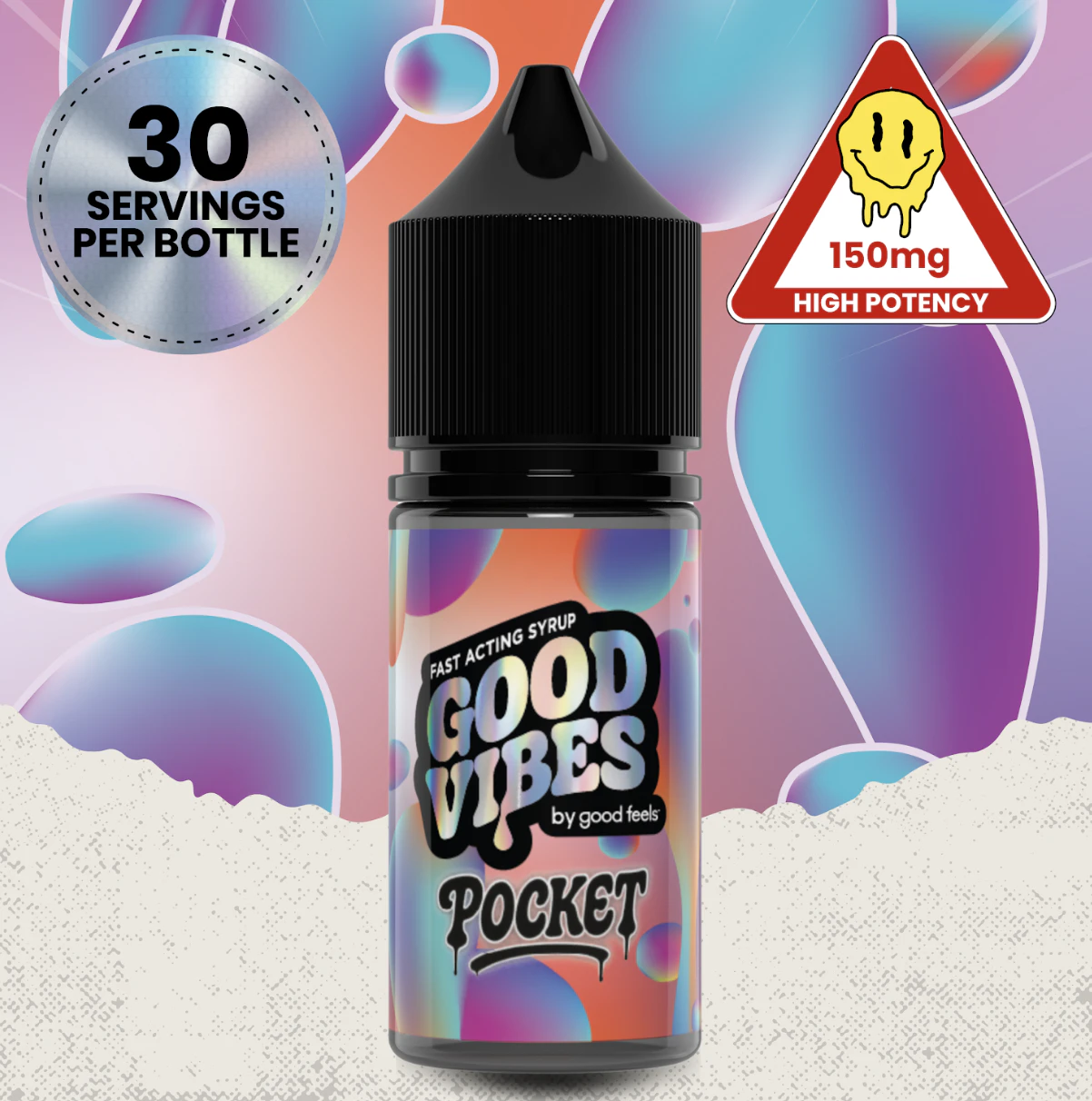 9ml Bottle, 150mgs THC. Good Vibes Pocket: Unflavored. Unleash your creativity with Good Vibes X Unflavored, the ultimate high-potency syrup for customization, delivering a powerful effect without altering the flavor of your favorite beverages. Enjoy this flexible, calorie-free, sugar-free option to craft your perfect experience. Shop weed delivery with Delivered, Inc.