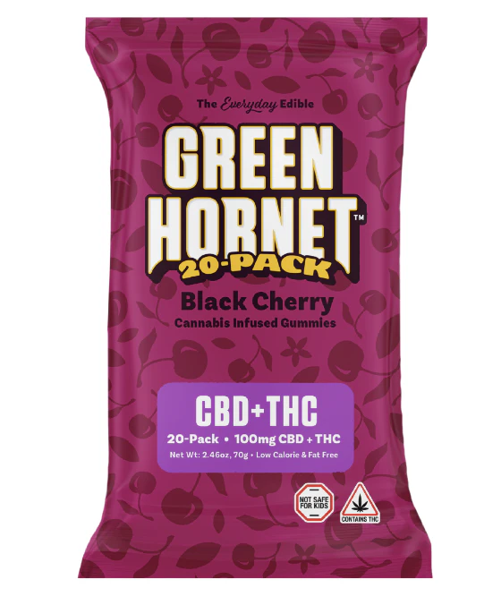 This latest Green Hornet gummy will have you asking for more! The sweet Black Cherry recipe is infused with a blend of high quality THC oil and CBD distillate to deliver a balanced 1:1 full spectrum experience. 5mg of THC and 5mg of CBN per piece.