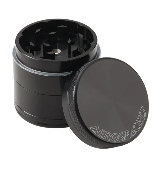 This Black AeroSpaced grinder feature diamond shaped razor sharp teeth, designed to shred through dense material with ease. AeroSpaced grinders are CNC machined from a single solid block of high-grade aluminum, resulting in each piece fitting perfectly. No Paint! Colors are achieved through anodization, which also hardens the aluminum. The silver version is polished aluminum. The top piece of every AeroSpaced grinder is held securely in place by an embedded magnet that still allows for easy rotation.
