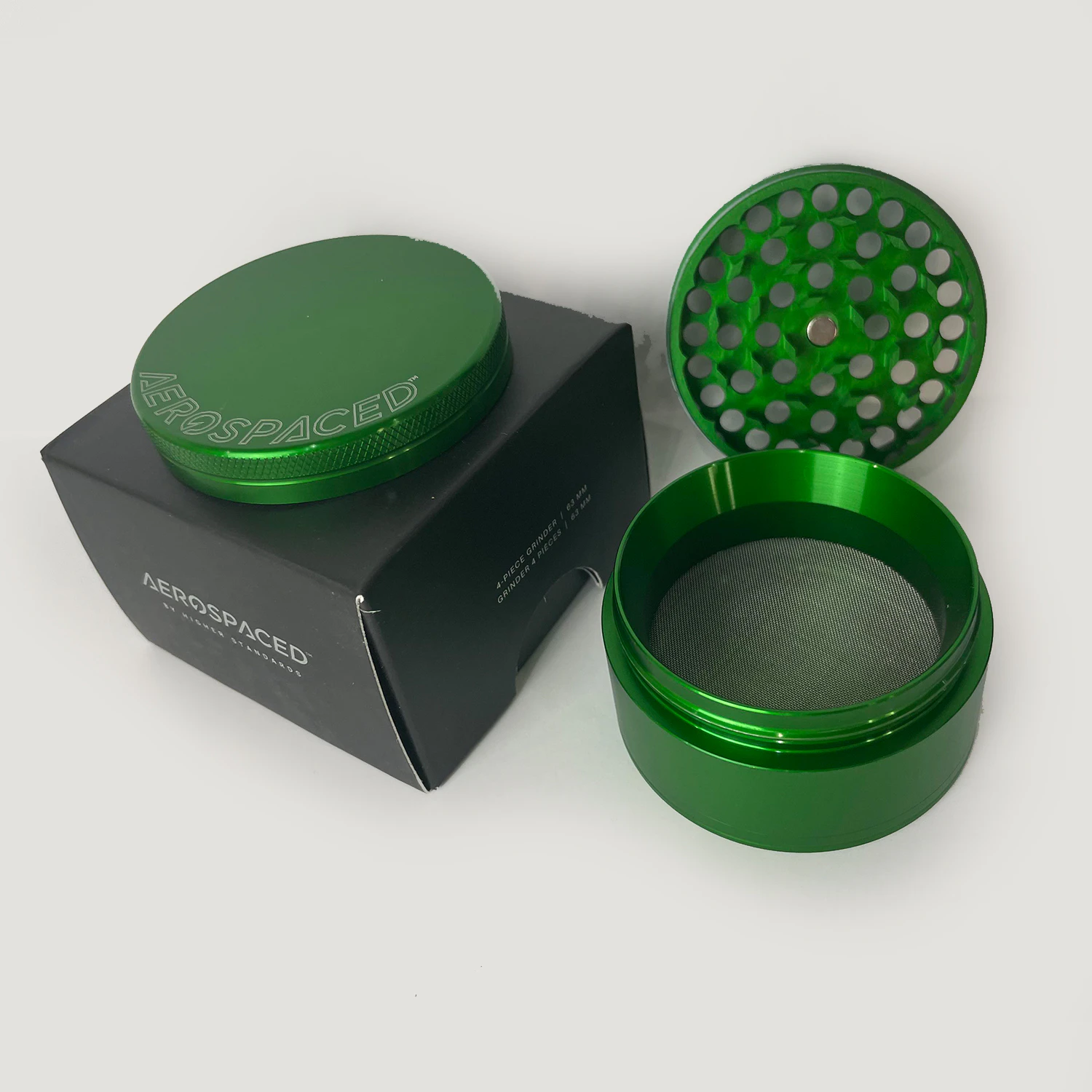 Aerospaced by Higher Standards, Classic green, the luxe smoking authority, sets the standard in grinder quality. These grinders feature aircraft-grade aluminum and sharp, diamond-shaped teeth that finely shred material to an even consistency—preparing you for an unmatched smoking experience.